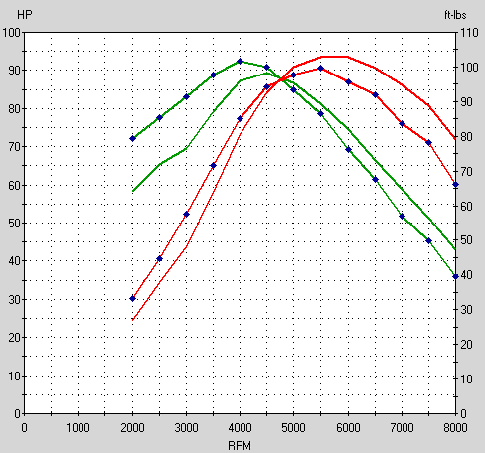 Le graphe est assez évocateur de lui même. Ceux qui pensaient pouvoir développer plus de puissance avec un 286 qu'avec un 266 en gardant le même rapport volumétrique se sont trompés. Le 286 n'apporte qu'un gain au dessus de 5500 tr, pour une puissance finale moins importante et une tractabilité très inférieure à bas régime.