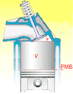 V + v représente donc le volume occupé par le mélange admis quand le piston se trouve au PMB. v représente également le volume qui sera occupé par le mélange en fin de compression.